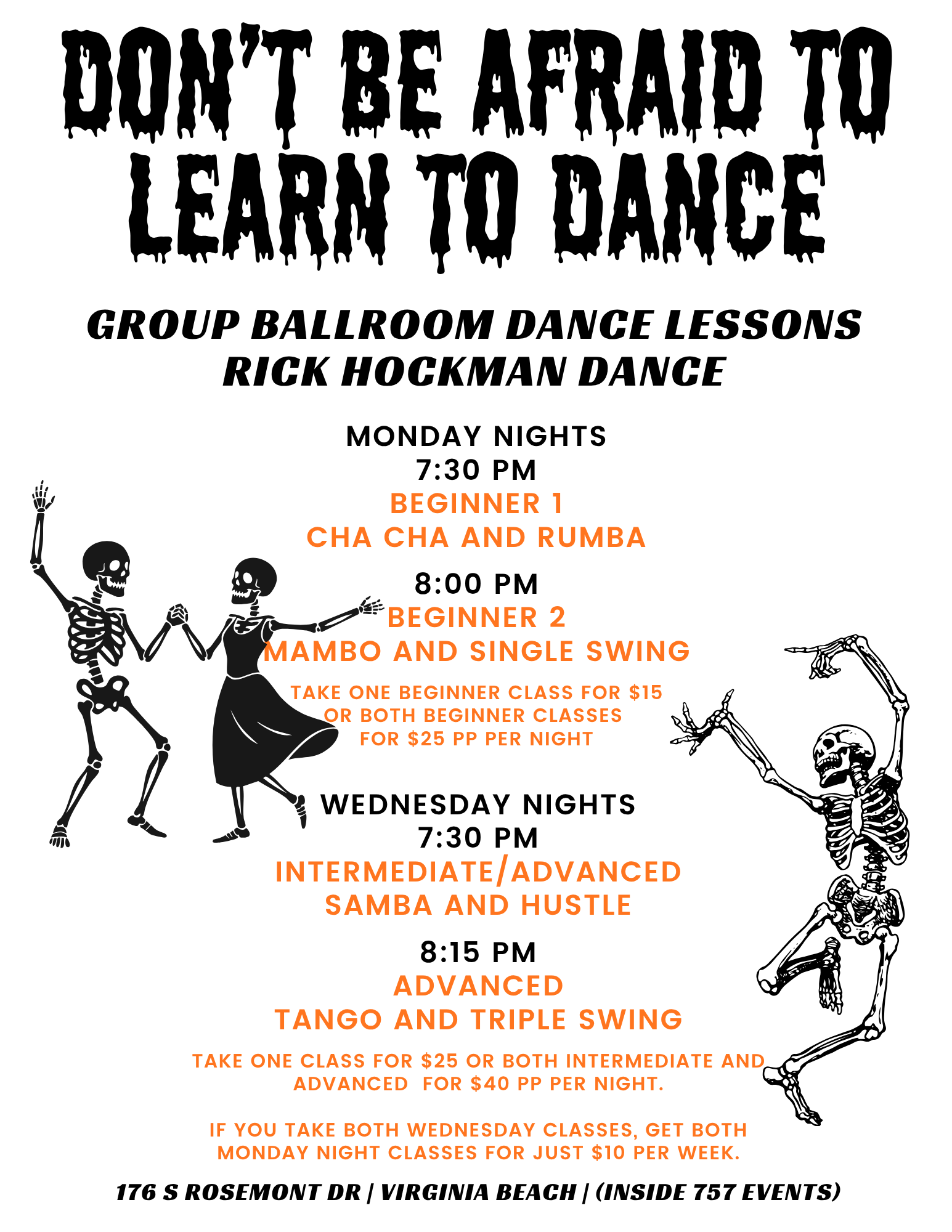 Rick Hockman is one of the most popular ballroom dance instructors in the Virginia Beach area. Rick specializes in social dance instruction and offers classes to suit any level dancer. His energetic style is designed to assist dancers of all levels in developing their abilities and techniques and helps students to rapidly progress through the skill levels. If you want to be a social dancer - Rick Hockman Dance is the studio for you. We are a great group of people who love to dance and have fun!